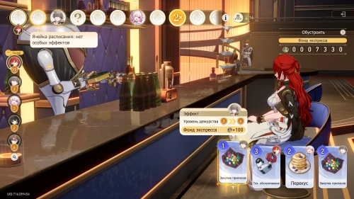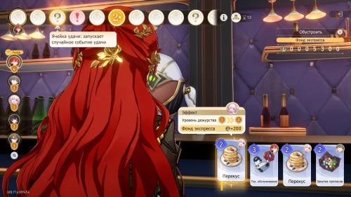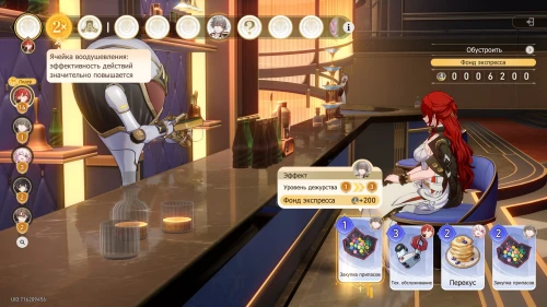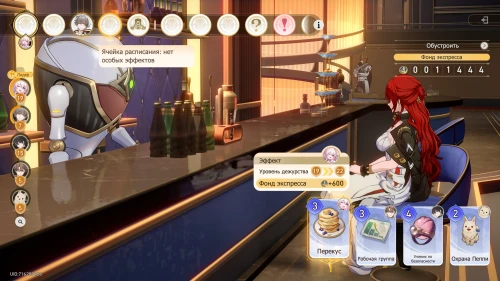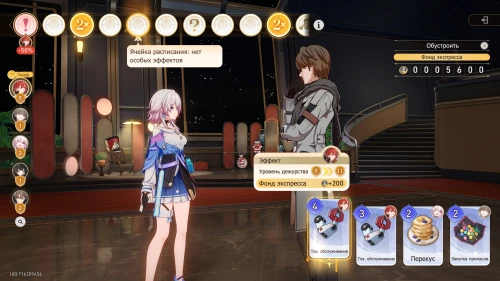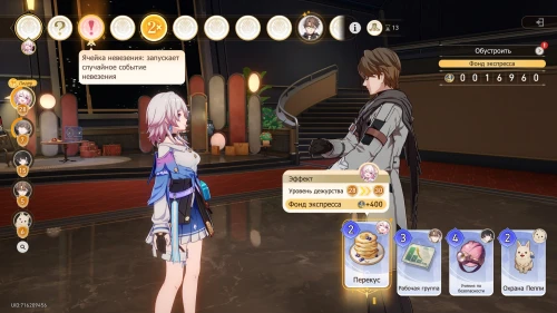 Далее выберите карту «Перекус» с Март 7, Чтобы получить +200 к фонду экспресса и повысить уровень дежурства девушки на 2. Вам выпадет событие удачи, в ходе которого Химеко получит +50 к опыту, что повысит ее левел на 5.