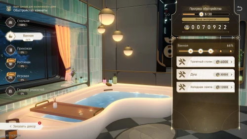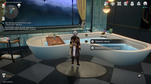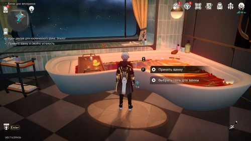 На этот раз у вас должно быть достаточно кредитов, чтобы полностью обустроить ванную комнату, купив дорогой Душ и Холодную лампу. Затем гляньте сценку с Март 7, которая подарит вам соль для ванны. Примите ванну для открытия достижения «С легким паром!».