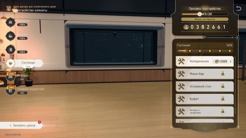 Возьмитесь за декорирование игровой. Сначала очистите зону, а потом начните закупку предметов. Просто купите все имеющиеся вещи. Отметим, что ваших кредитов вполне должно хватить на завершение всей комнаты.