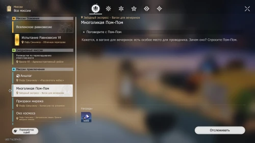 Среди наград будет новая одежда для проводника. Плюс, вы получите миссию «Многоликая Пом-Пом». Пройдите на первый этаж Вагона для вечеринок и поговорите с Пом-Пом. Далее вы сможете выбрать ей новую форму. Сделав это, вы завершите квест.