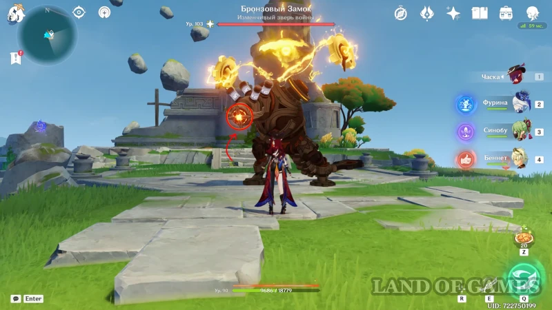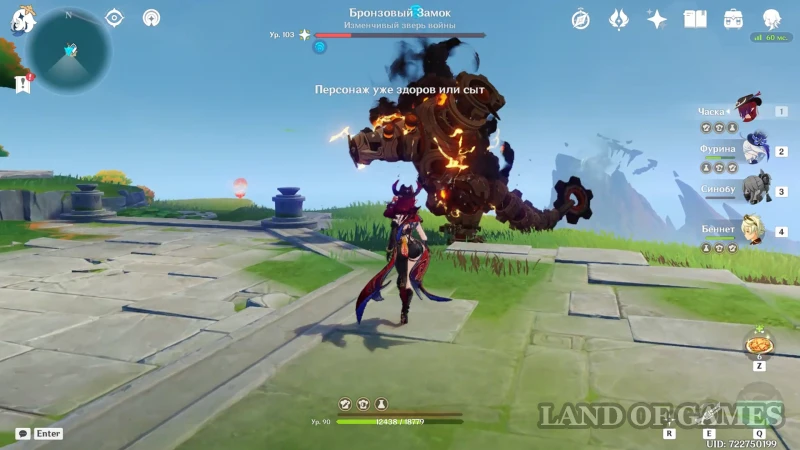 - 3-я ачивка (+20 камней истока): одолейте «Бронзовый замок», в ходе боя усилив его заряженную атаку четырьмя стихиями.