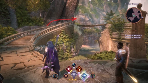 Как только вы попадете по ту сторону моста, автоматически активируется точка быстрого перехода Приюта Элвенана. С ее помощью вы сможете переместиться сюда в любое время или поменять компаньонов в отряде, так как руины будут полны высокоуровневыми врагами.