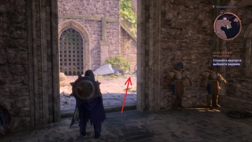 Сверните влево и рядом с закрытыми воротами вы найдете миниатюрные фигурки стражей с нужным положением.