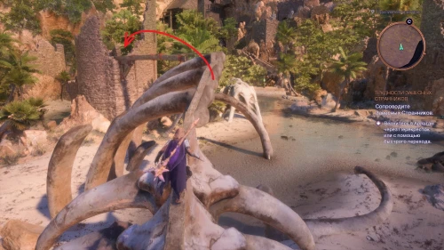 Затем снова поднимите его с помощью навыка и заберитесь на спину скелета. Добравшись до башни, зажгите предпоследнюю жаровню и спуститесь вниз.