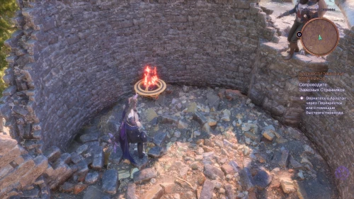 Первая жаровня находится на вершине руин в северо-западной части локации. Поднимитесь по лестницам наверх и с помощью лириумного кинжала или навыка Хардинг «Песнь камня», выдвинете каменные блоки.