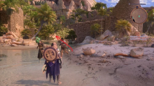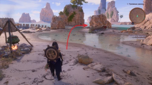 Вторая жаровня находится на берегу, за одним из огромных валунов. Зажгите огонь и бегите к следующему факелу.
