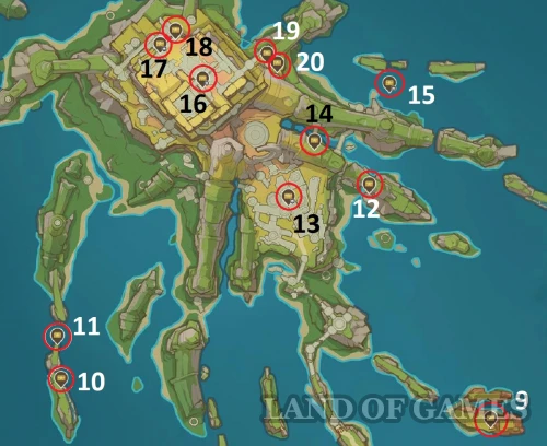 Всего в этих областях можно раздобыть 20 удивительных сокровищ, каждое из которых указано на картах ниже.