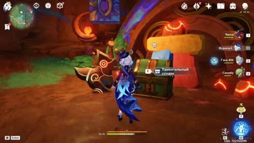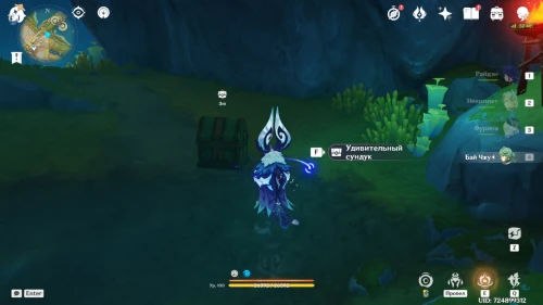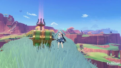 Это сокровище можно найти в пещере, куда Путешественник попадает в миссии «Дворец иллюзорного змея». Сокровище стоит в северной части локации, у разрушенной лестницы (смотрите пункты со вторым и третьим столбами).