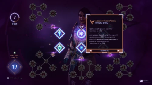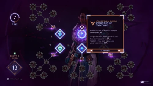 Навык Стражи Завесы гарантирует увеличение критического урона от атак Нэв вполовину, а также позволит наносить больше урона на врагов с низким уровнем здоровья и сократить время перезарядки остальных способностей.