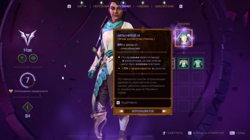 Уговорить Нэв стать тайной защитницей города будет самым эффективным вариантом, так как именно данные награды смогут увеличить общий и критический урон от ее навыков, накладывая при этом постоянное состояние раскола на врагов.