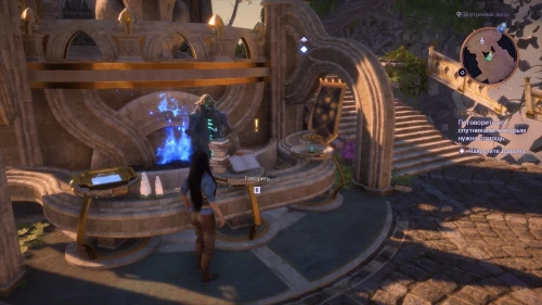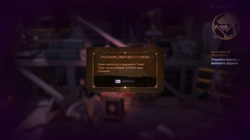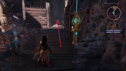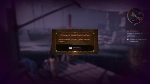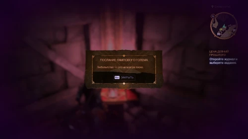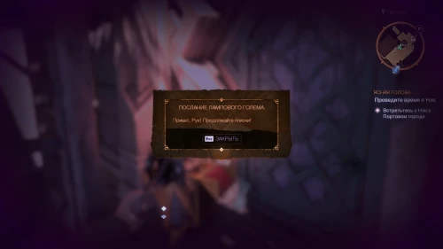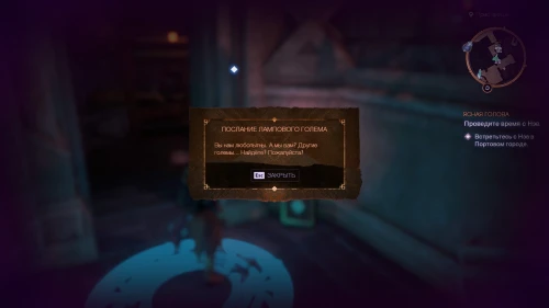 По пути этого задания вы сможете попасть к быстрой точке перемещения Смотровая площадка Аулы. От данного телепорта поверните направо и поднимитесь на площадку, где наверху вас будет ждать очередной голем с загадочным сообщением.