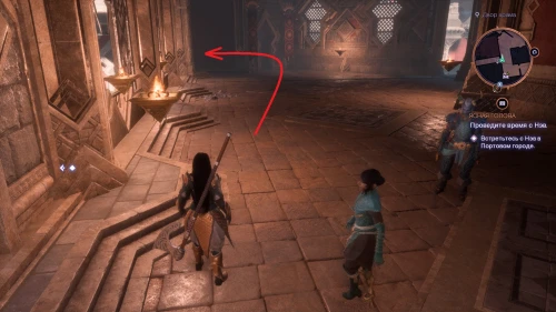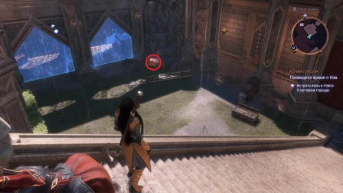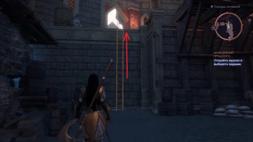 От точки Площадь Уртемиэля следуйте в правую сторону и поднимитесь наверх по лестнице. Сверните влево в проход, охраняемый стражниками, и, выйдя в большой зал, следуйте в проход слева в дальнем его конце. Спуститесь во двор, сразитесь с венатори и заберите третье послание лампового голема.
