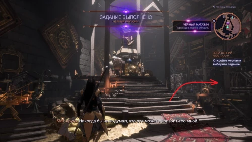 Переместитесь к локации Центральный рынок и следуйте на юго-запад за квестовый маркером. Как только вы ступите за порог Черного магазина ваш квест будет завершен. Справа от торговца Ксенона Антиквара будет находиться ламповый голем с сообщением, призывающим вас вернуться в Прибежище.
