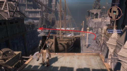 Попасть в следующую локацию получится лишь после прохождения квеста «Дело о мощеном лебеде». Найти рынок можно, следуя от телепорта Прибрежный проход. Пройдя на рынок, бегите в проход справа. Голем будет находиться за дверью, закрытой решеткой. Чтобы активировать нерабочий механизм, вам пригодится навык Нэв или лириумный кинжал. Прочитайте еще одно письмо и продолжайте поиски остальных.