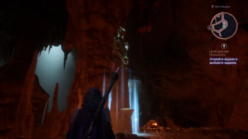 Активируйте Алтарь и уничтожьте все сияющие глифы дальнобойными атаками. Увидеть их вы сможете прямо с выступа пещеры.