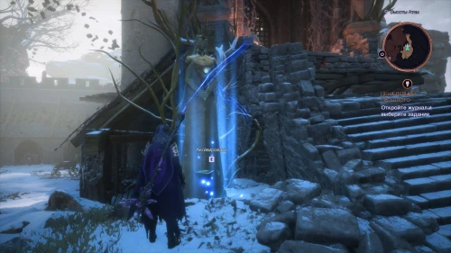 Одна из целей будет скрыта в окне соседнего помещения. Заберитесь на деревянный помост на противоположной стороне и разбейте глиф дальнобойной атакой.
