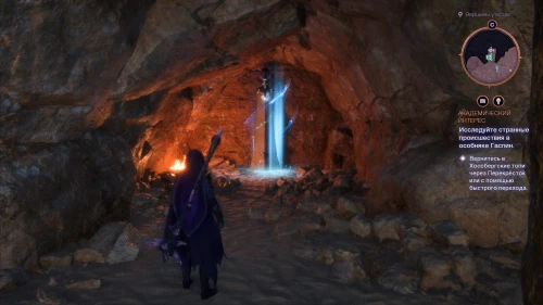 Добраться до статуи получится с помощью навыка Хардинг «Песнь камня» или лириумного кинжала, выдвинув все каменные блоки из потоков лавы.