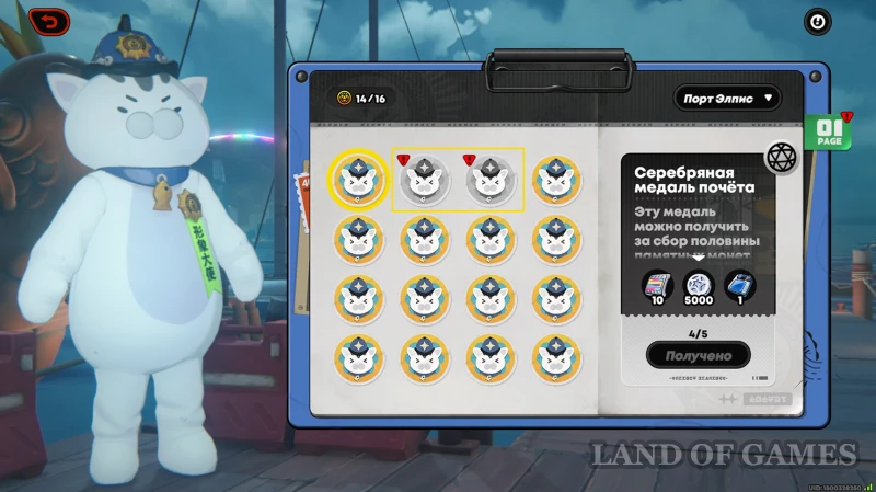 После того, как вы соберете все 16 отметок в чек-листе Мяучело из порта Элпис, вам откроется бронзовая ачивка «Медали лучше рыбы» – за нее можно получить 5 полихромов из раздела «Жизнь» → «Путешествие по Риду».
