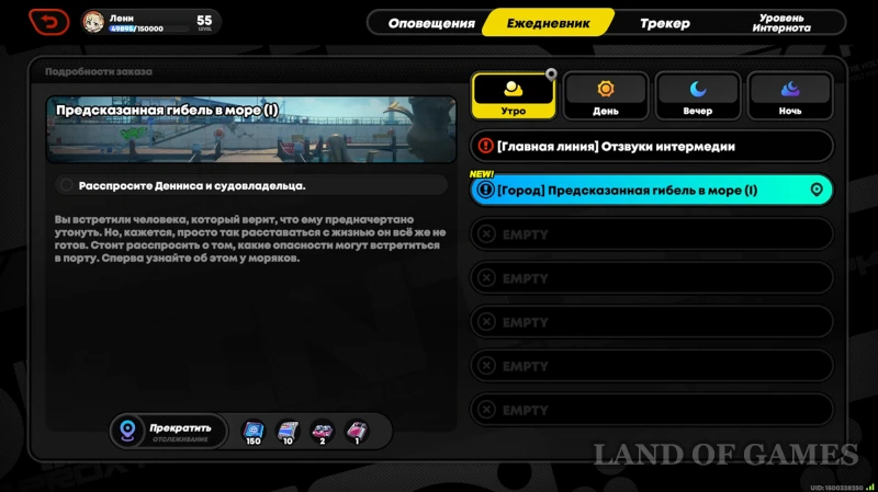 Отметка 14-й просьбы связана с квестом «[Город] Предсказанная гибель в море (I)», который начнется после диалога с кашляющим парнем по имени Ним – он стоит справа от Мяучело почти всегда, кроме глубокой ночи. В первой части задания вам нужно поговорить с несколькими сотрудниками порта о «предсказании», которое не дает покоя Ниму.