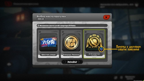 Режим «Совместной прогулки» не привязан к приглашениям в чате и может быть запущен неограниченное количество раз. Зайдите в чат агента и кликните по соответствующей кнопке, чтобы попасть в отдельное меню. Тут показаны живые обои, снизу есть значок с наградами и действие «Провести время» – жмем и выбираем место встречи (рекомендованное отмечено квестовой меткой). Во время прогулки в предлагаемом игрой месте, вы столкнетесь с такими мероприятиями: