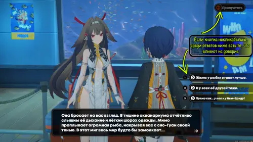 - [Доверие +]. Обычное повышение при выборе нейтральных для собеседника ответов;
