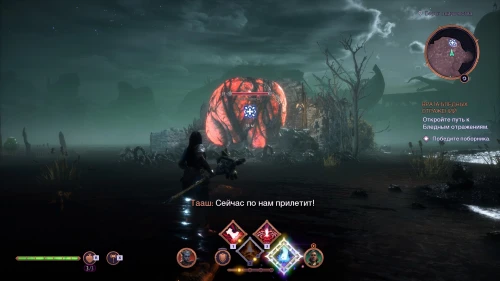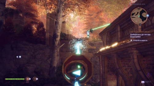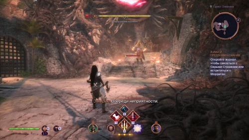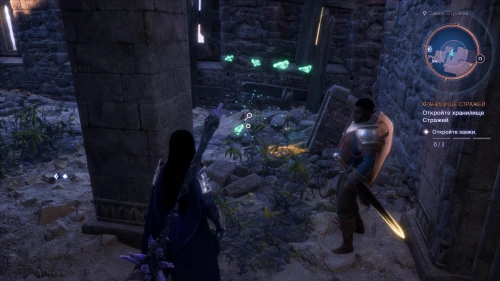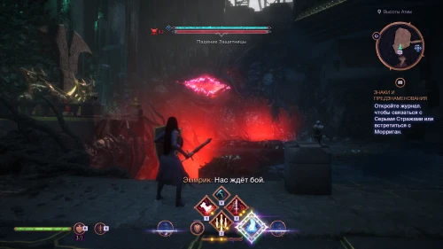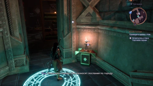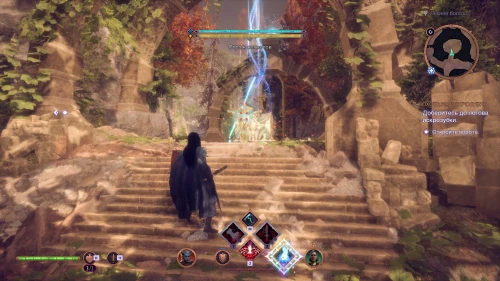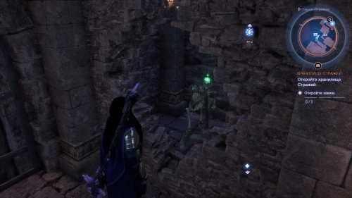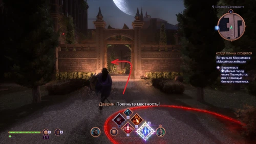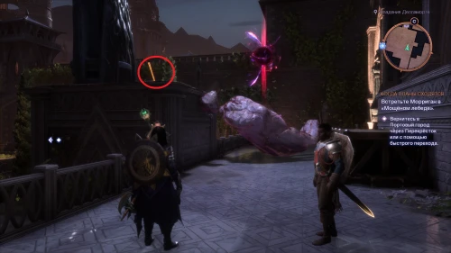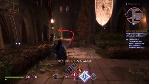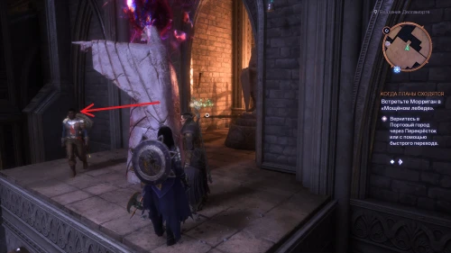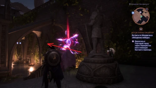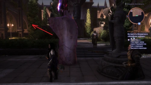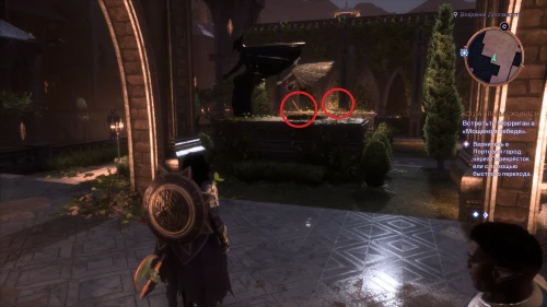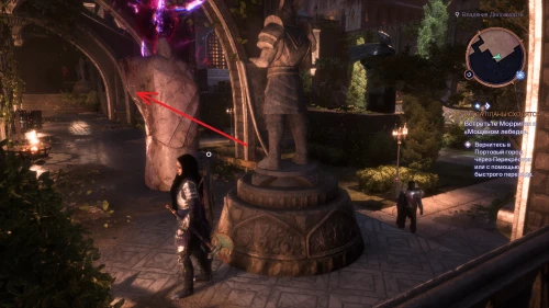 Пробравшись во двор особняка, вам предстоит также решить небольшую головоломку со статуями стражей. Узнать верное направление вам поможет нестабильность в завесе рядом с каждой скульптурой. Воспользуйтесь навыком Луканиса, чтобы призвать подсказки.
