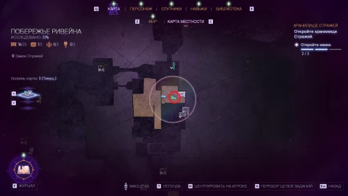 Первый сундук Побережья с особенным снаряжением вы сможете получить в локации Замок Стражей, в награду за прохождение квеста «Хранилище Стражей». Разбейте стену с помощью бомбы и доберитесь до маркера с восклицательным знаком.