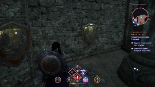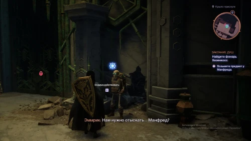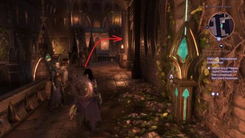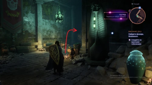 В рамках задания вам необходимо встретиться с Манфредом в локации Крыло прислуги, чтобы с его помощью попасть в усыпальницу. Следуя за красными гобеленами вы доберетесь до погреба. Манфред также откроет потайной проход, где в самой северной его точке вы найдете клад с особенным снаряжением.