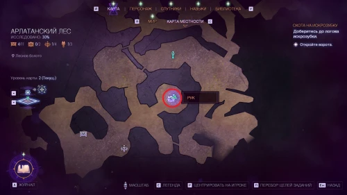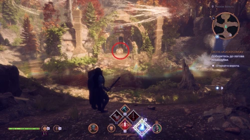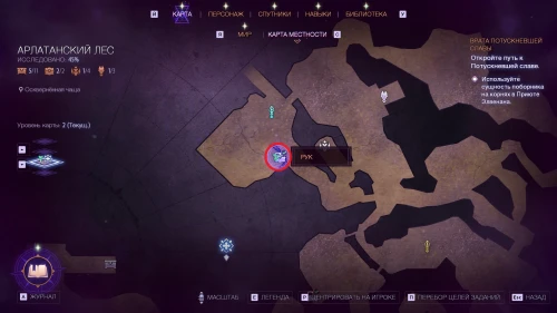 Чтобы отыскать первый клад утерянного времени в Арлатане, переместитесь в локацию Оскверненная чаща. Справа от точки телепорта вы обнаружите руины, покрытые скверной. Следуйте туда, уничтожьте всех отродий и все сгустки скверны. С помощью навыка Песнь камня поднимите каменные платформы, чтобы забраться на балкон верхнего этажа, где вас будет ожидать очередной сундук.