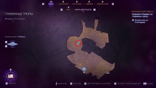 По заданию Хардинг «Выжидающий камень» вы впервые отправитесь на Глубинные тропы Кэл Шарока. Один единственный сундук вы сможете обнаружить в локации Аванпост Кэл Шарока, еще до встречи со Сталгардом.