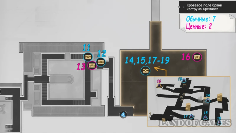 Эта локация состоит из нескольких уровней, в которых можно отыскать 37 обычных, ценных и роскошных сундуков. На картах ниже можно посмотреть их примерное расположение.