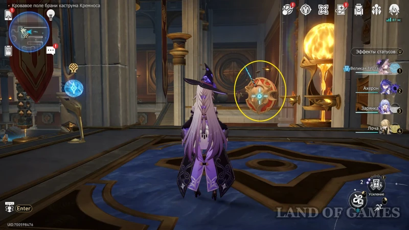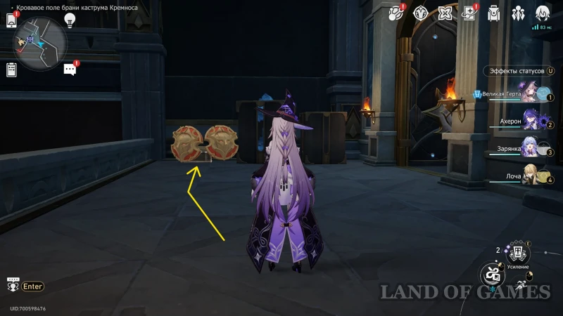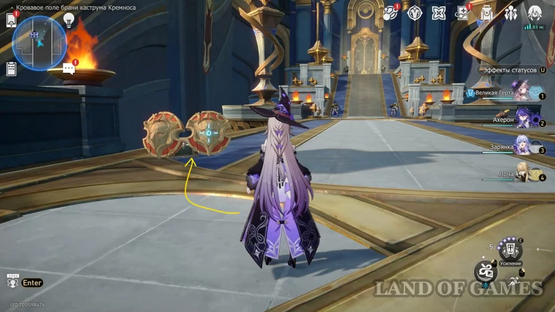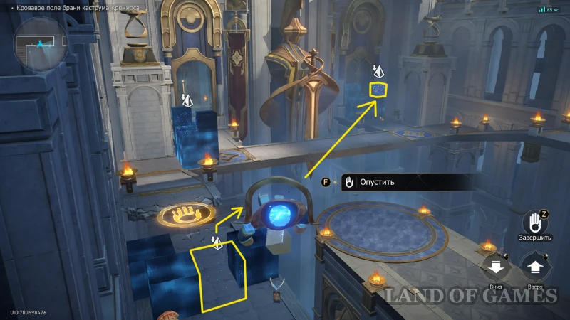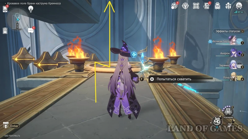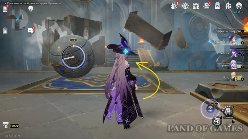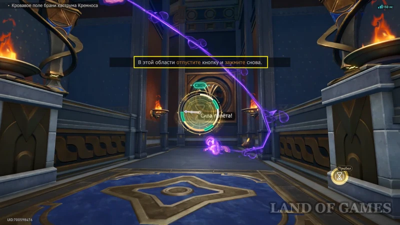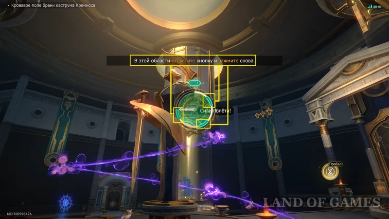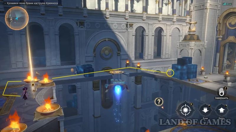 Собрав прошлый трофей, бегите к Золотому дротику на северо-восточной половине зала, сломайте шит и восстановите орудие (зажав «пробел»). Попробуйте схватить артефакт, а затем бегите за его лазурным шлейфом.