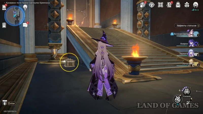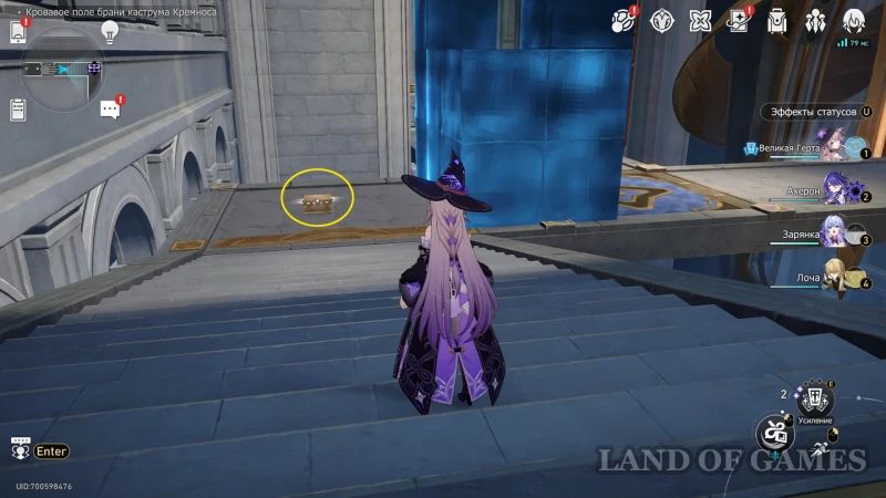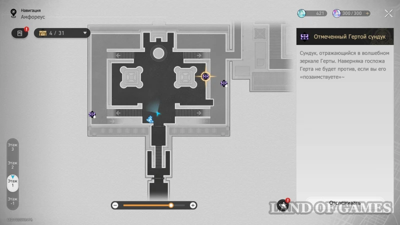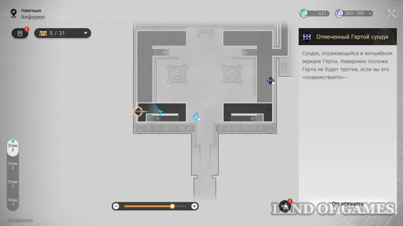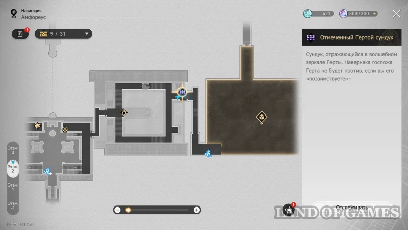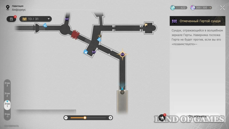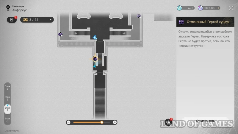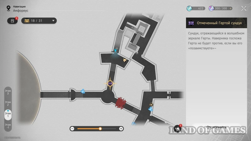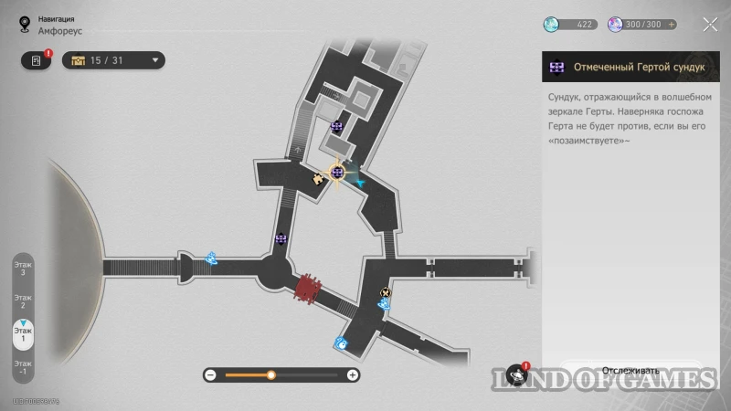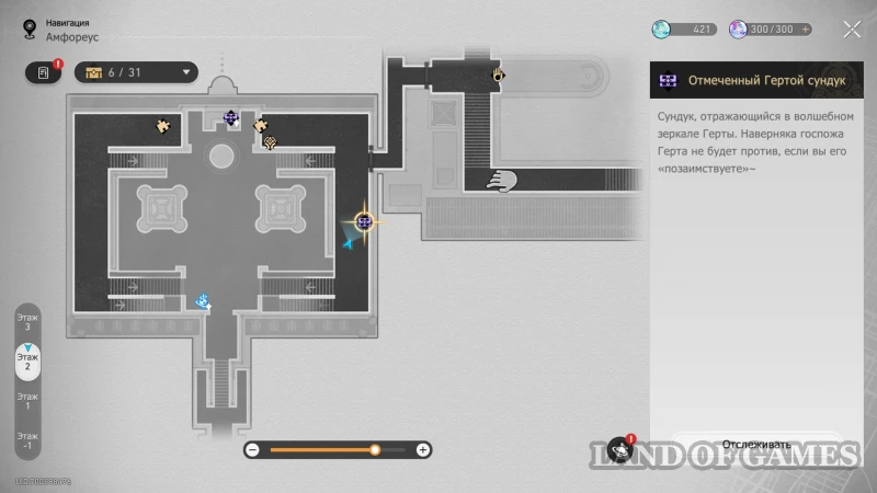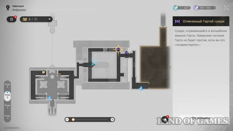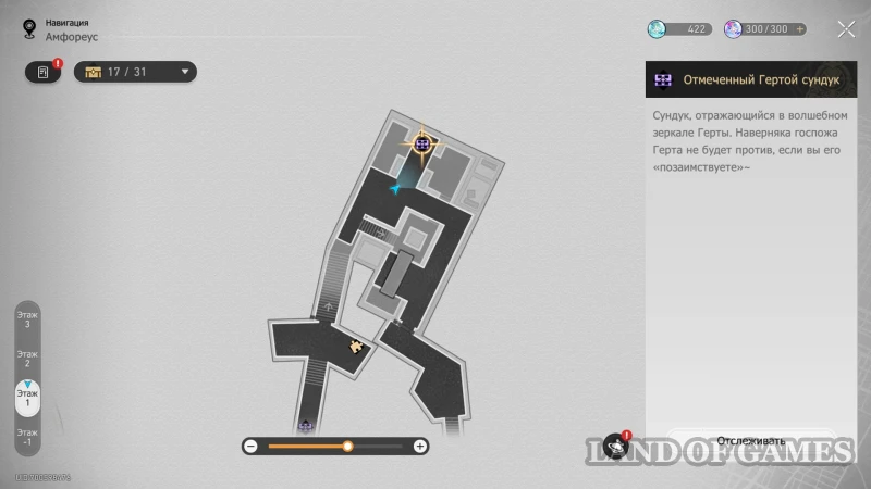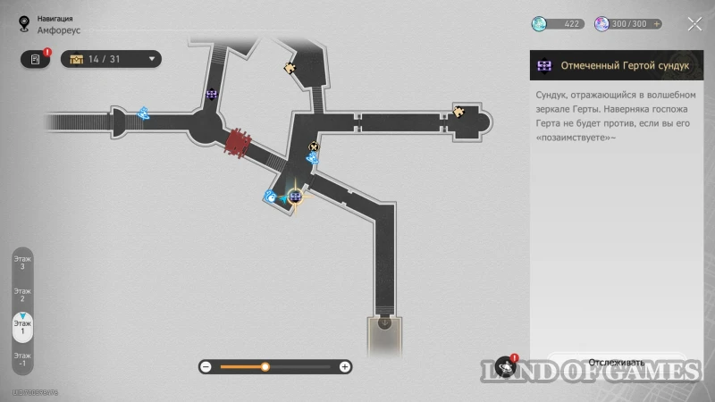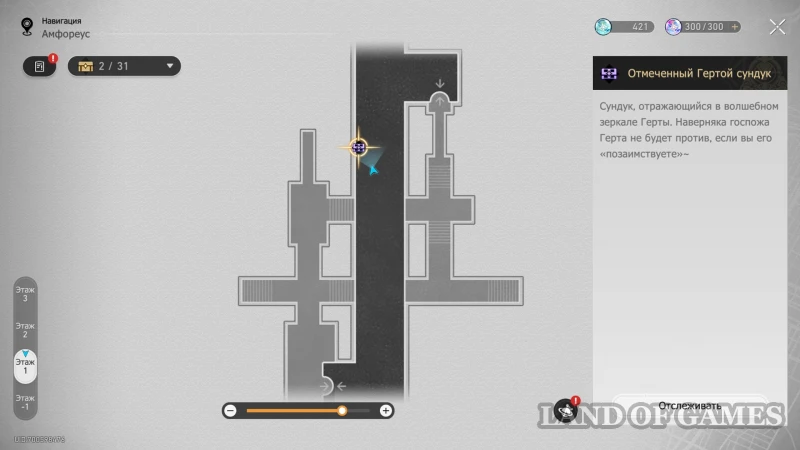 Далее подниметесь на 2 этаж по юго-восточной лестнице: очередной сундучок будет стоять около интерактивного каменного шара.