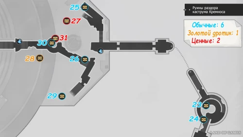 На территории данной локации можно отыскать 33 сундука, причем сделать это вам удастся только после начала выполнения сюжетного задания под названием «О опустошенная земля, вспомни былую славу». Приготовьтесь к сражению с элитными монстрами, а также решению головоломок. Подробную информацию по поиску ларцов с сокровищами можно найти в нашем отдельном руководстве.