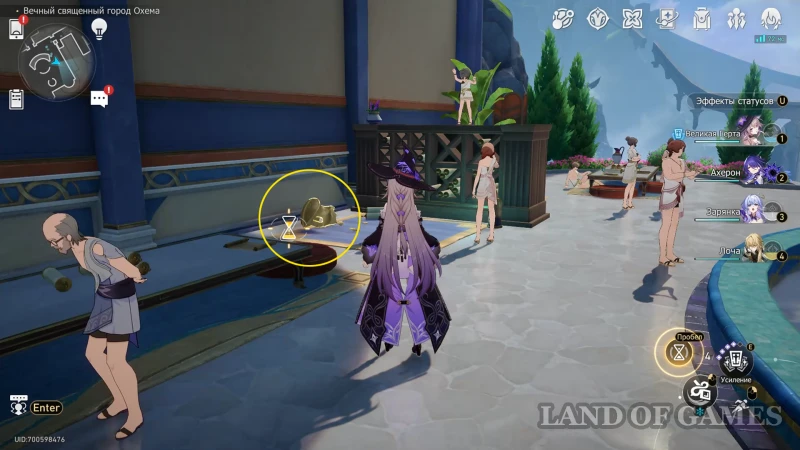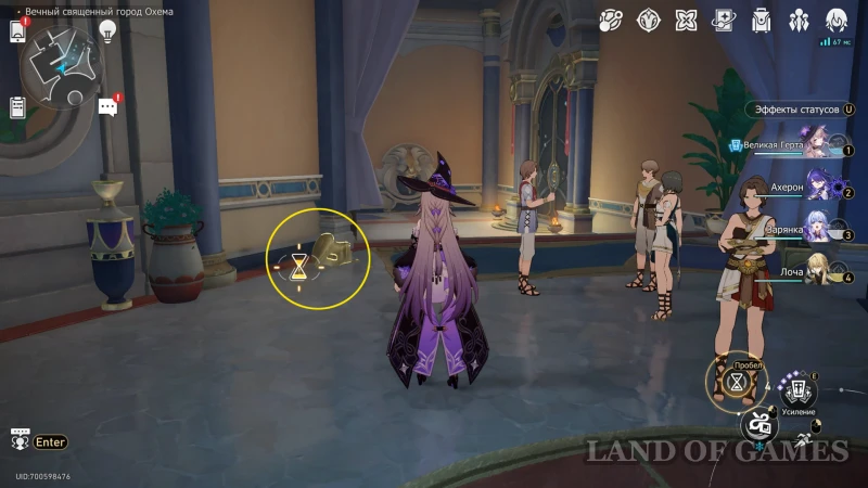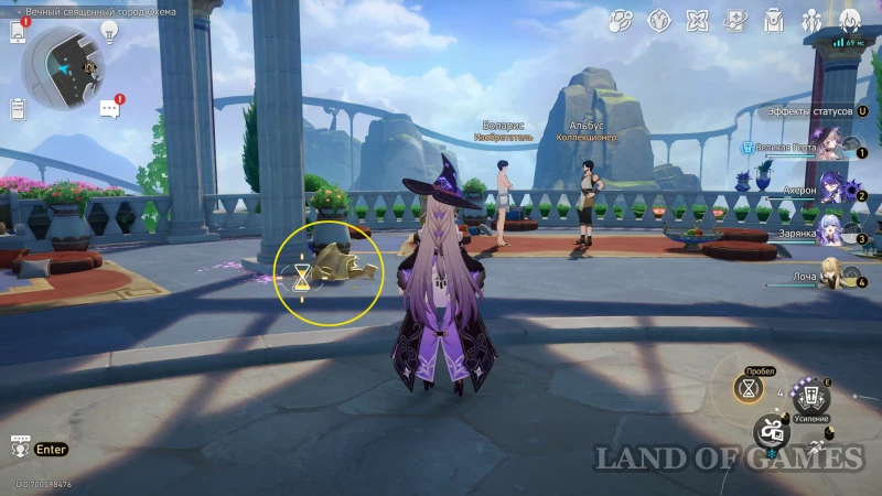 Пятый огонек находится на северо-западе главного дворца Охемы, в углу под крытой аллеей напротив коня Януса (его значок есть на карте). Подойдите к НПС Боларису и Альбусу и восстановите груду обломков под колонной, а затем поговорите с существом.