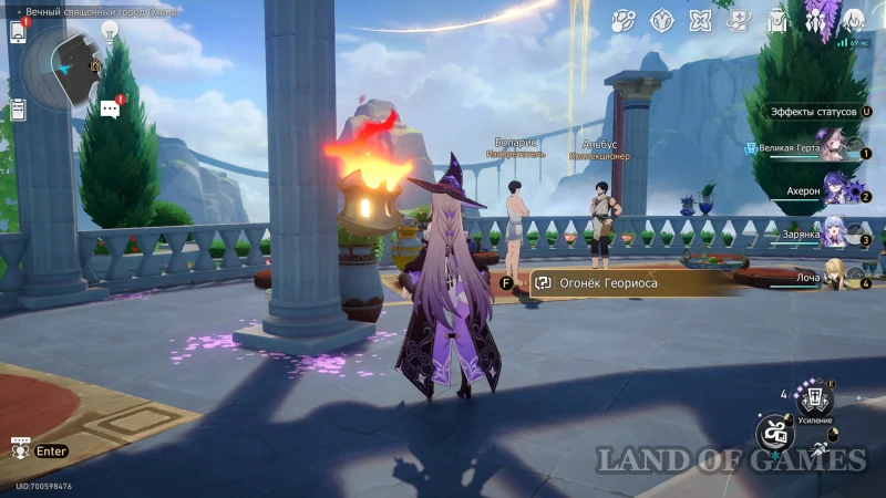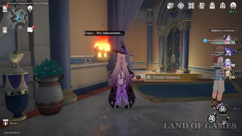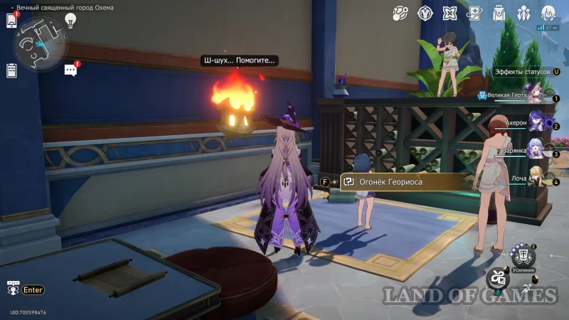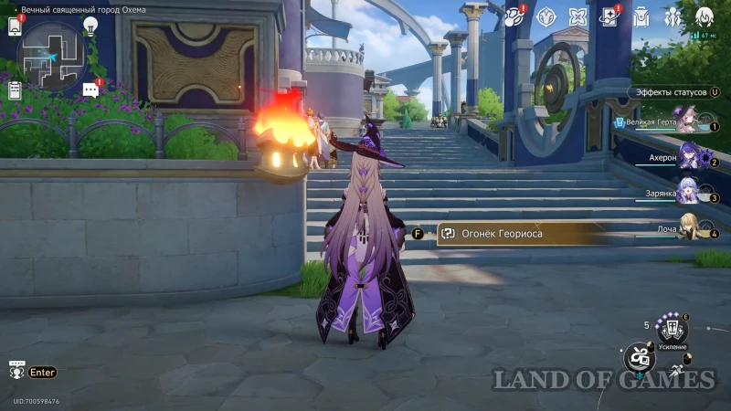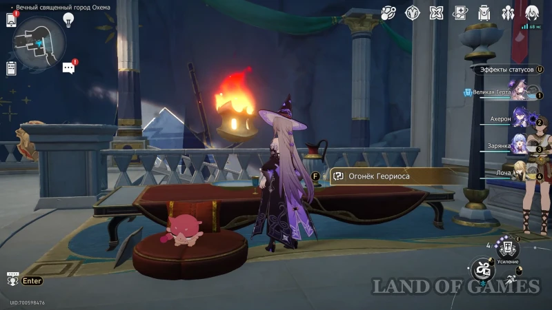 Огонек Геориоса в Honkai: Star Rail является творением титана земли с Амфореуса, и его можно встретить на карте Вечного священного города Охема. За помощь ожившим огонькам, похожим на парящие пламенные маски, выдаются скрытые ачивки, небесная амброзия, осколок памяти и уникальные предметы — факелы Пламя Геориоса, которые пригодятся в будущих путешествиях по земле трех Путей.