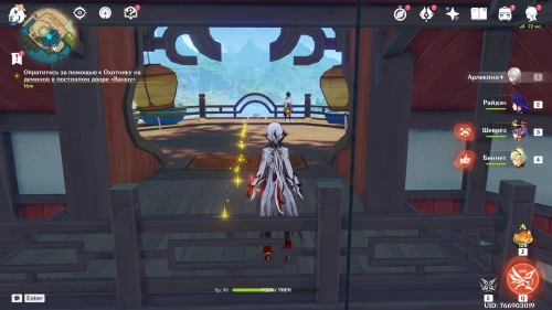 Нин Гуан попросит вас отправиться к грани и спасти застрявших там друзей. Для этого вам понадобится помощь Сяо. Телепортируйтесь к постоялому двору «Ваншу» и поднимитесь на крышу, чтобы найти охотника на демонов. Поболтайте с ним и отправляйтесь в лес на поиски утечки.