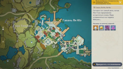 Переместитесь в порт Илун, расположенный в Долине Чэнью, и пройдите немного вперед к квестовому маркеру. Затем поговорите с друзьями и гляньте новый ролик с пением Юнь Цзинь. В конце вам покажут сценки с различными персонажами. В качестве вознаграждения за прохождение этого квеста вы получите 30 примогемов, 30 тысяч моры, 6 волшебной руды усиления и 3 книги героя.