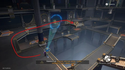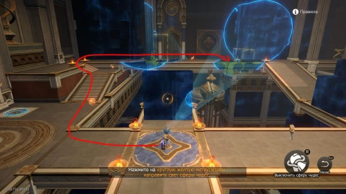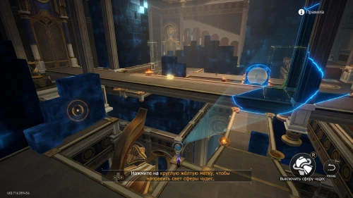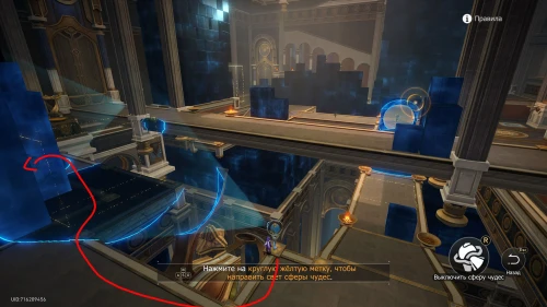 Перейдите на противоположную сторону и включите вторую Сферу чудес, а затем подсветите ею дорогу наверху, чтобы убрать огромные кубы, блокирующие путь.