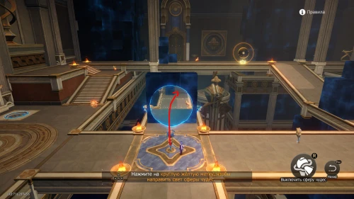Возвратитесь назад и активируйте Сферу чудес слева от книги, а потом направьте его свет на огромный куб, чтобы вы смогли добраться до второй Сферы чудес на другой стороне.