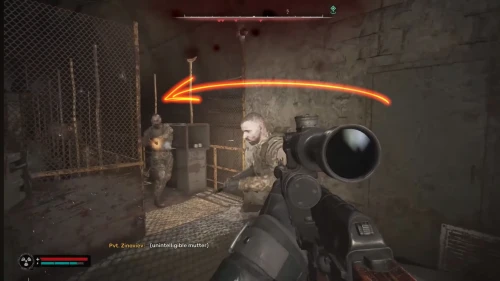 Следуйте вперед по объекту, отстреливаясь от солдат, пока не доберетесь до большого помещения. Поднимитесь по лестнице слева в рубку и нажмите красную кнопку, чтобы открыть ворота на вашем пути. Остерегайтесь контролера, также находящегося в данном помещении.