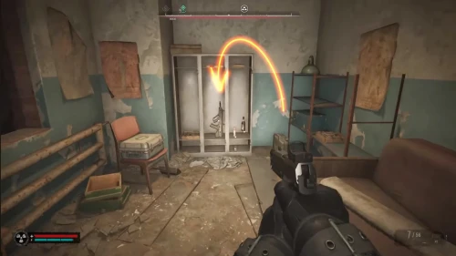 Спуститесь из рубки вниз и проследуйте далее в открывшийся проход. Бегите по туннелю до конца и сверните в комнату справа. Там, в шкафчике вы найдете еще одну винтовку.