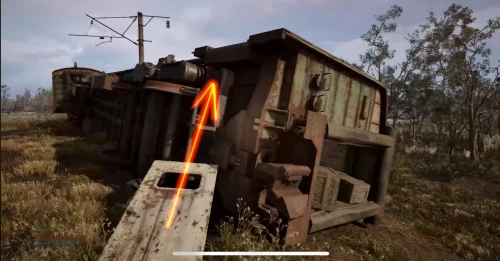 Подойдите к первому опрокинутому вагону с южной стороны, запрыгните на крышу и спуститесь внутрь. Между пассажирскими сидениями вы найдете сумку с флешкой.