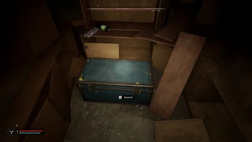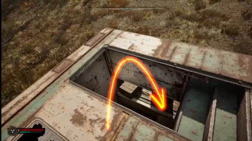 Ключ от него вы найдете в соседнем доме белого цвета в разбитом телевизоре. Вернитесь к гаражу со схроном и отыщите сумку с флешкой на нижней полке рядом со скелетом.