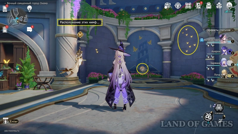 Если делать все по порядку, то для разгадывания пророчества нужно найти всех нимф Золотого кокона Аглаи в Охеме. Когда все золотые бабочки вернутся к Швее, посетите ее пост на 2 этаже Мраморного дворца, к востоку от которого находится якорь «Сад жизни»: вооруженный манекен будет смотреть в сторону лифта, на стене появятся рисунки бабочек, а в глубине — алтарь судьбы с меняющимися рунами титанов.
