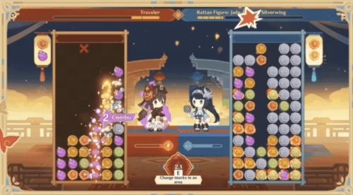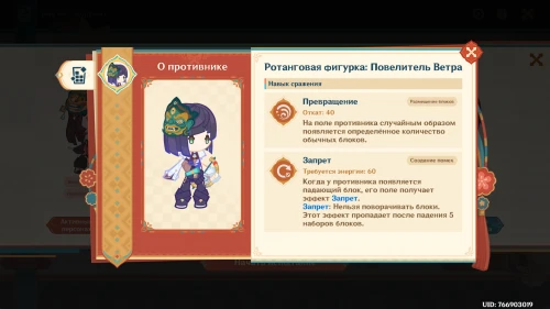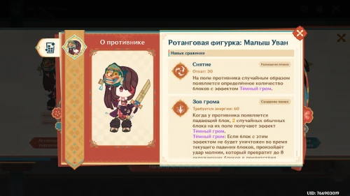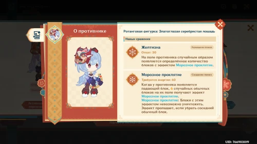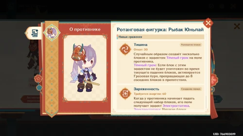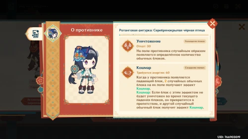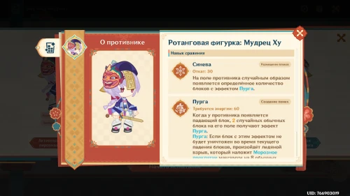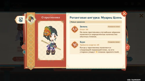 По этой причине лучшим вариантом против данного соперника будет та фигурка, которая сможет изменять цвет ваших блоков или усиливать их, что позволит вам быстро убрать бомбы со своего поля. Мы советуем вам взять Рыбака Юньлай (Кэ Цин), Златоглазую серебристую лошадь (Гань Юй) или Серебрянокрылую черную птицу (Лань Янь).