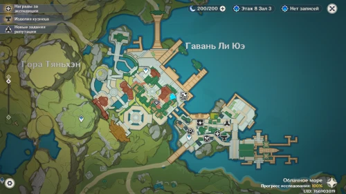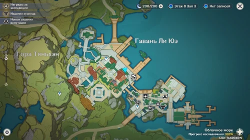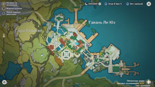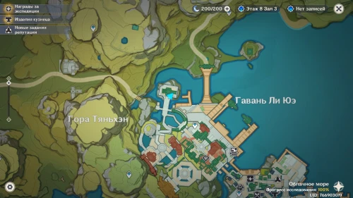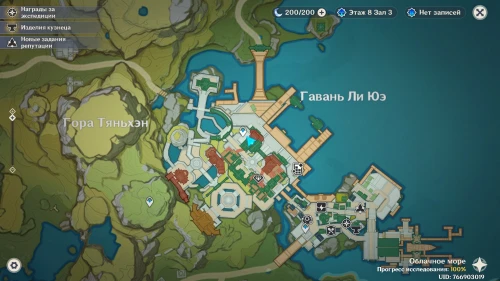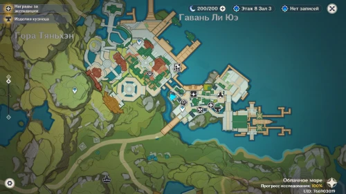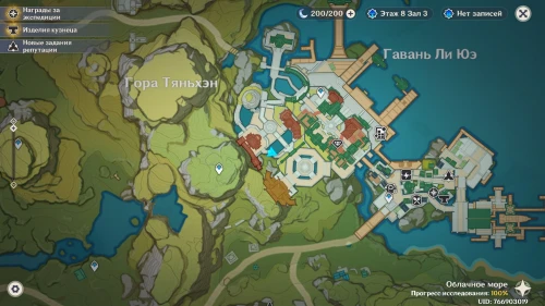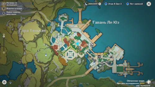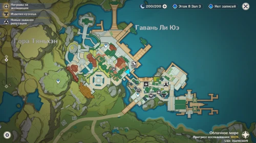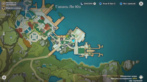На данный момент времени можно отыскать 12 монет удачи, 3 подзорные трубы и 3 пусковые трубы. Их примерное расположение продемонстрировано на карте ниже. Все они находятся в пределах гавани Ли Юэ. Далее мы в деталях расскажем, где их можно отыскать, и что с ними делать.