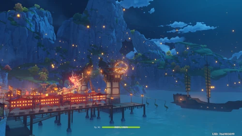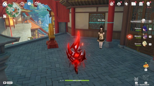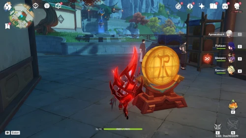 Переместитесь к северному телепорту города, а затем двигайтесь в центр столицы Ли Юэ, где вы обнаружите 4 пусковые трубы. Ударьте любую из них, чтобы увидеть впереди фейерверк и засчитать взаимодействие с объектом.
