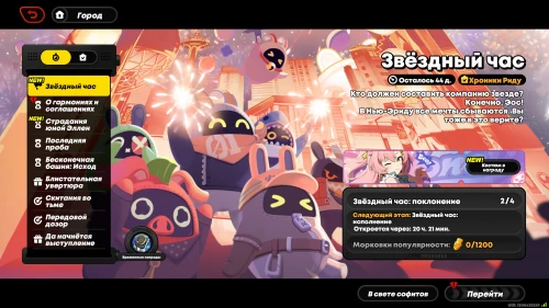 В Zenless Zone Zero (ZZZ) Звездный час является главным событием патча 1.5, в рамках которого вам предстоит помочь Эосу победить в конкурсе «Эн-нута славы». Для этого вам придется просматривать и выполнять заказы, а также создавать новые костюмы для банбу и участвовать в «Великом приключении Марселя» для получения морковок популярности.