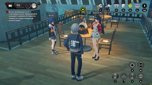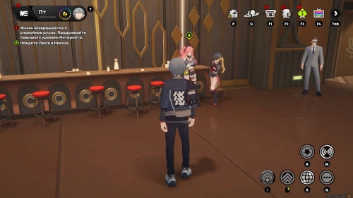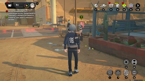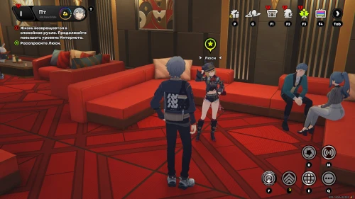 Пообщайтесь с Люси, чтобы узнать о ее проблемах. Затем поговорите с Николь. Далее взаимодействуйте с банбу-учителем музыки слева и пройдите его небольшую мини-игру (нужно вовремя нажимать клавишу «Пробел», когда движущийся круг оказывается рядом с фиксированным).